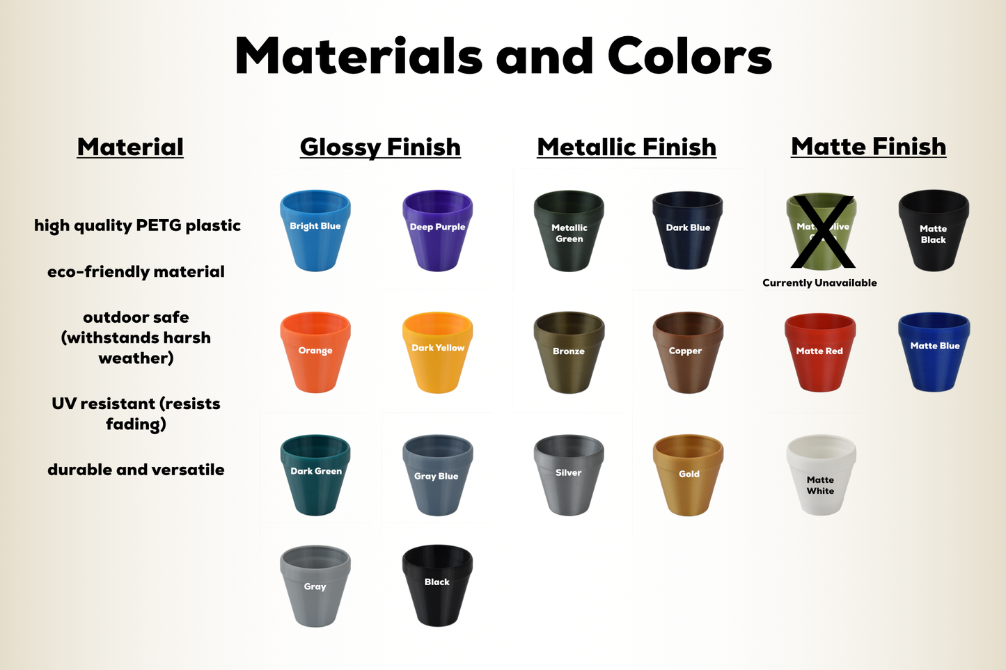 Plant not included and only shown as example. Designed and made-to-order exclusively by GLU3DPrints in Plano, Texas.