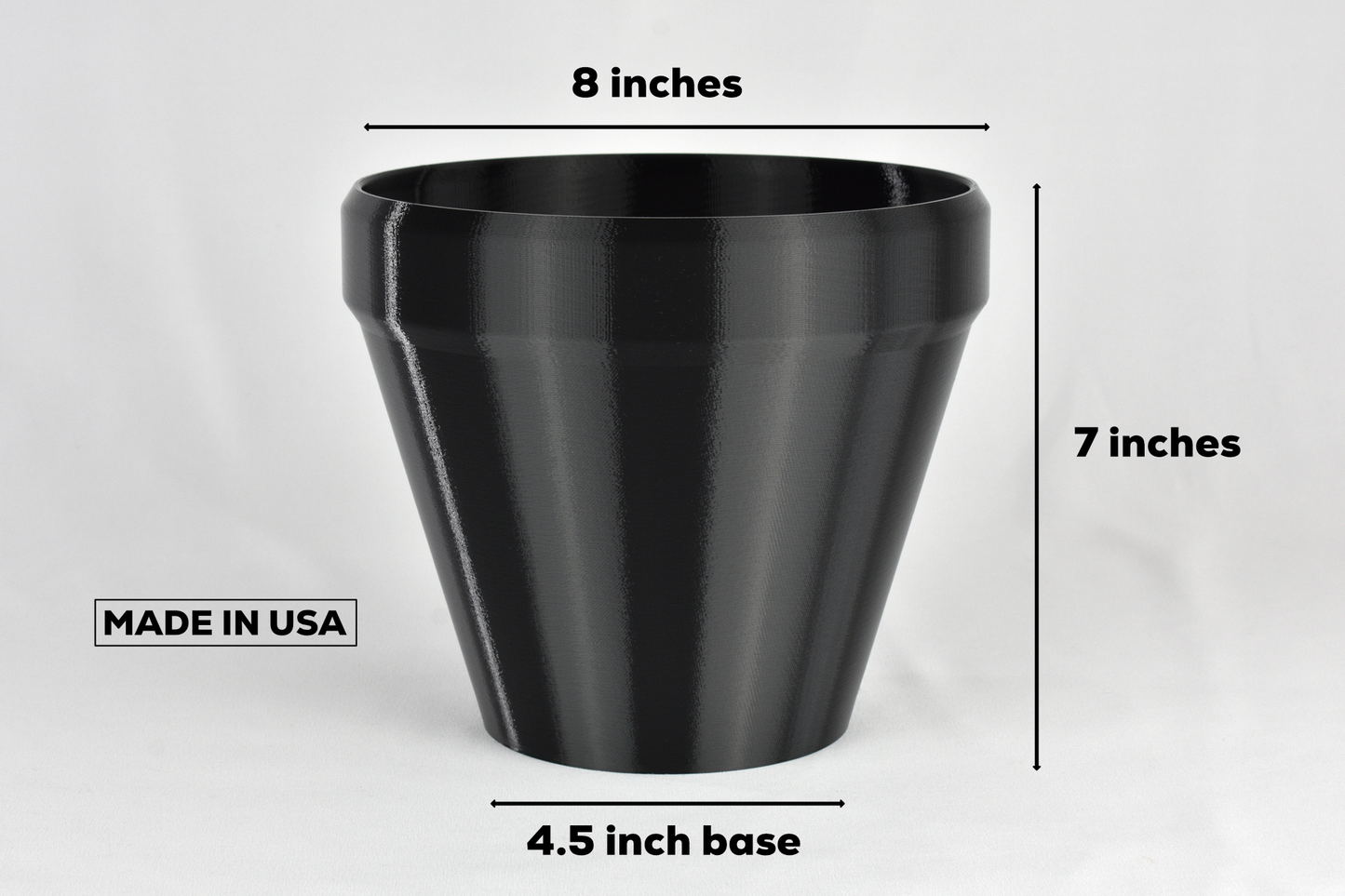 Large Classic Flower Pot, 8-inch Round Planter, Black, Indoor / Outdoor