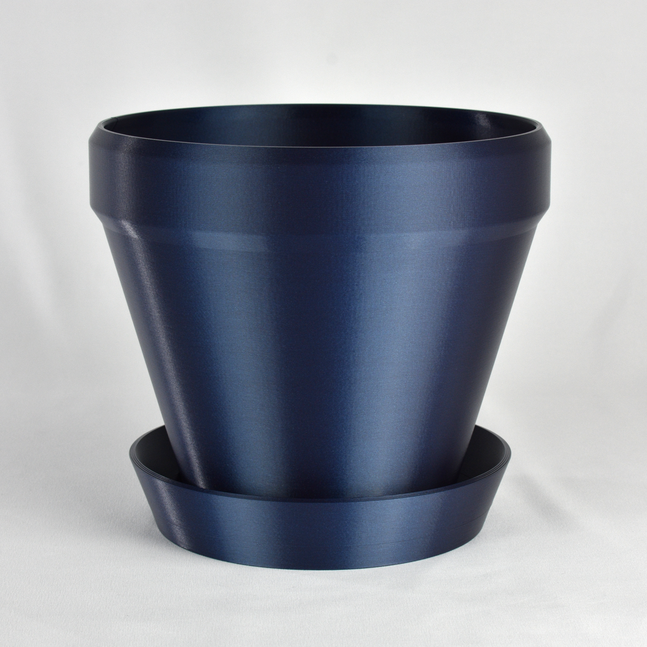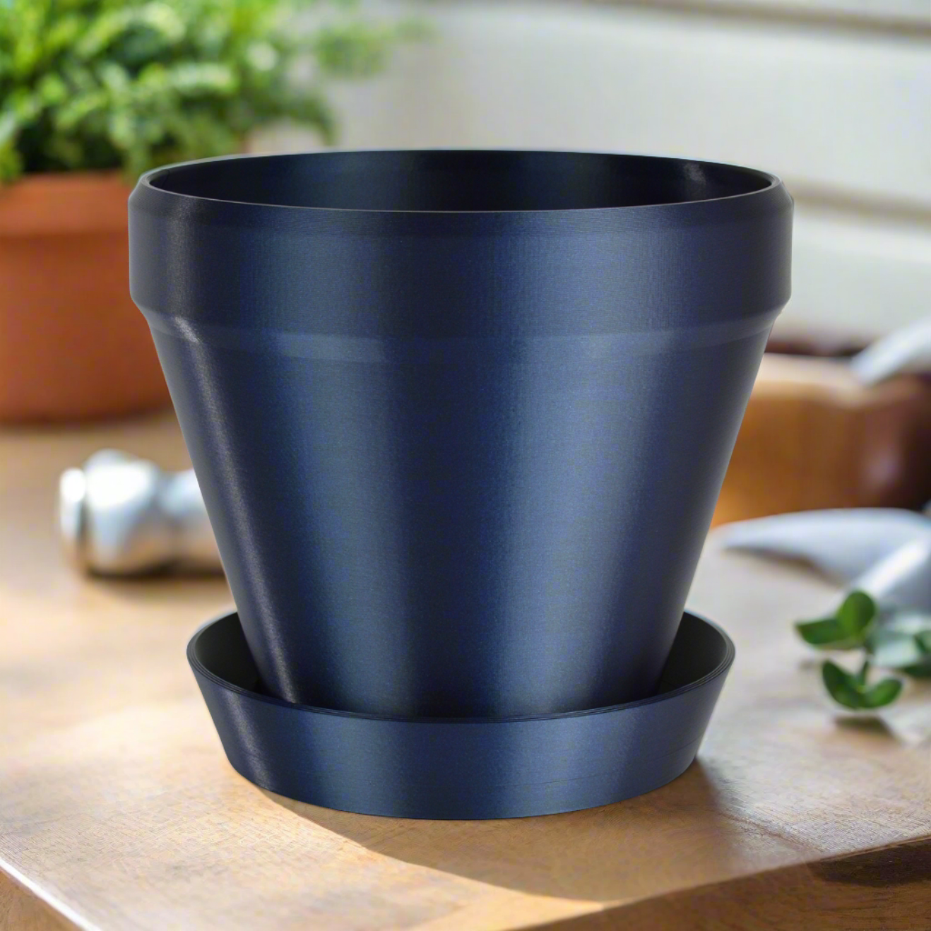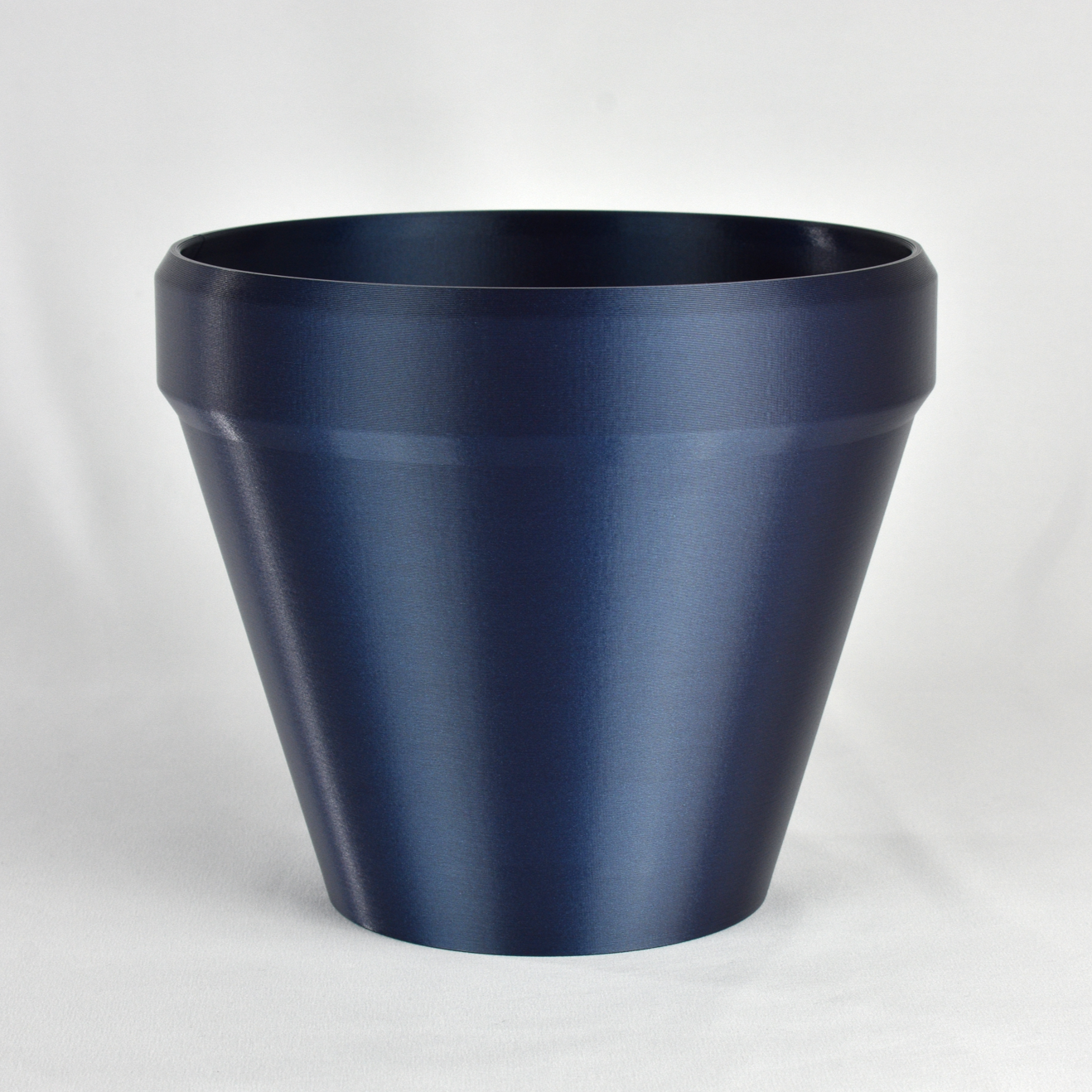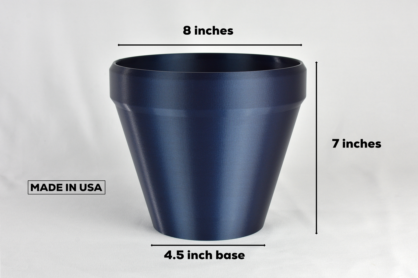 Large Classic Flower Pot, 8-inch Round Planter, Dark Blue Metallic, Indoor / Outdoor