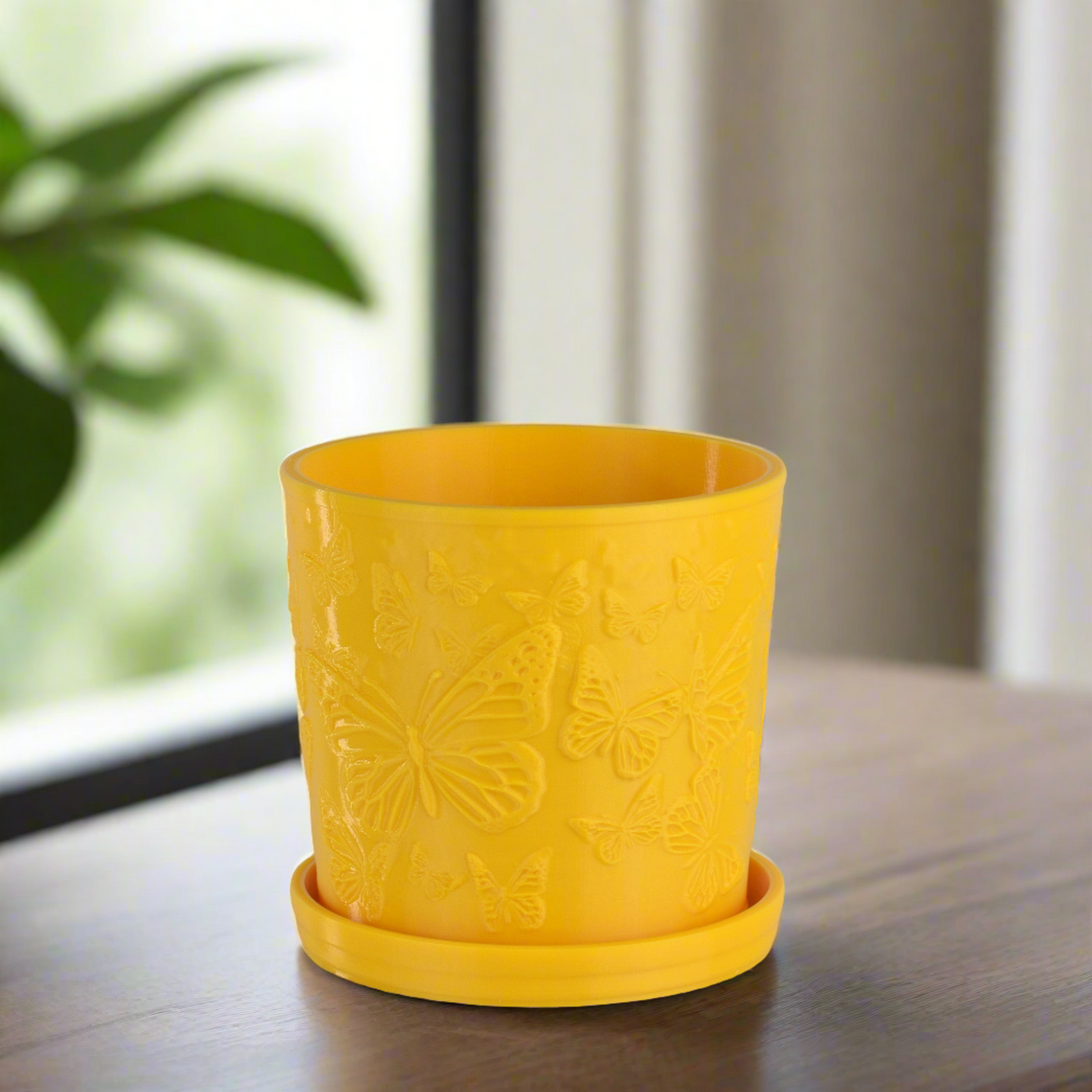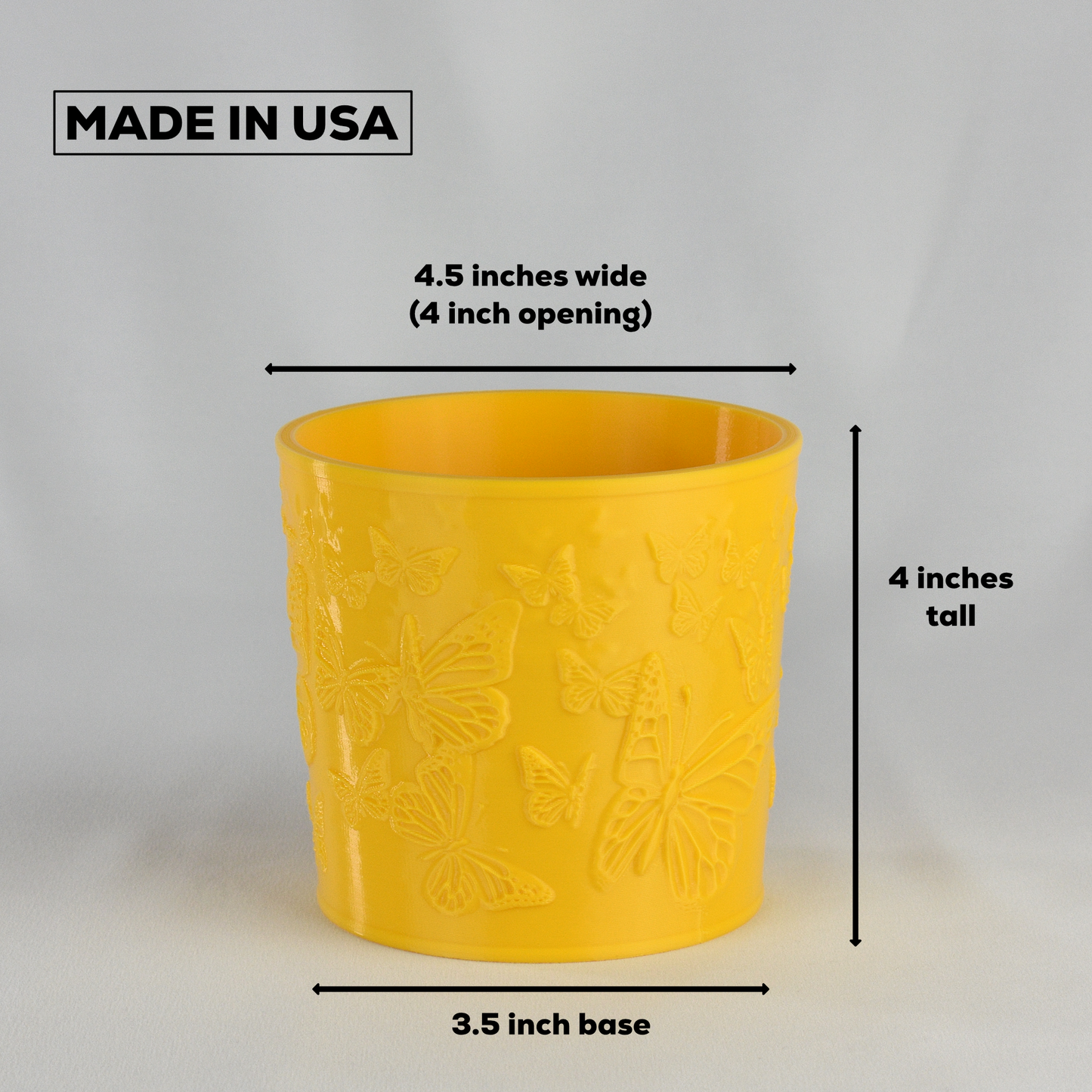 Small Butterfly Planter, Lemon Yellow, 4-inch Pot
