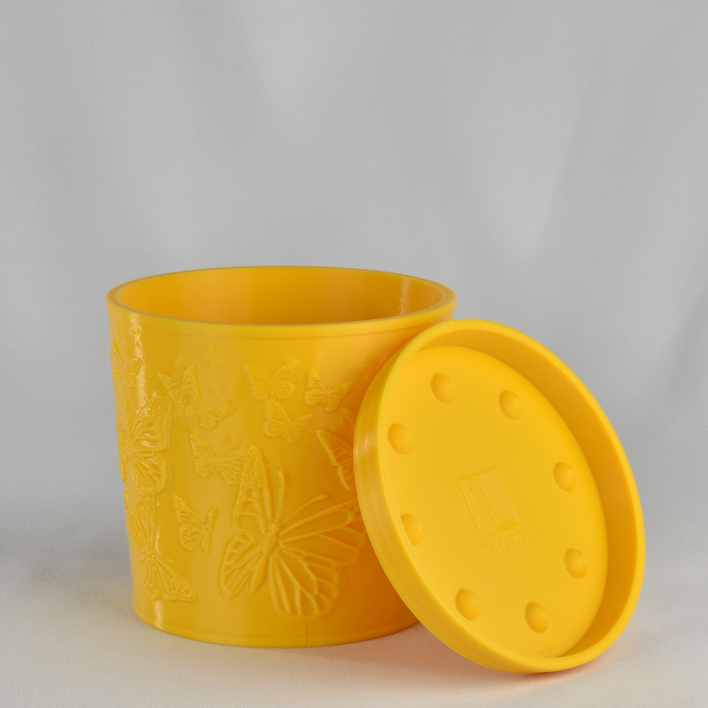 The smaller version of our unique and original Flock of Butterflies planter pot in Lemon Yellow brightens up any windowsill, bookshelf, or outdoor area. Plant decor at its finest - butterflies and plants simply go together, don’t they? This planter combines an indoor flower pot's decorative touch with outdoor-grade materials to be at home anywhere they are placed.