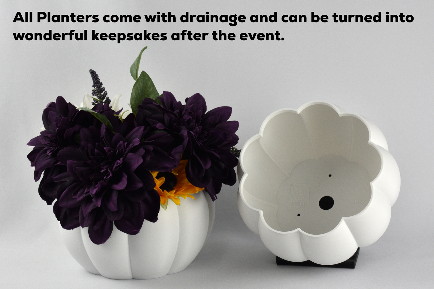 Our Matte White Pumpkin Planters are perfect for fall weddings, fall baby showers, party favors, pumpkin centerpieces, mum or succulent planters, Thanksgiving and other fall events.