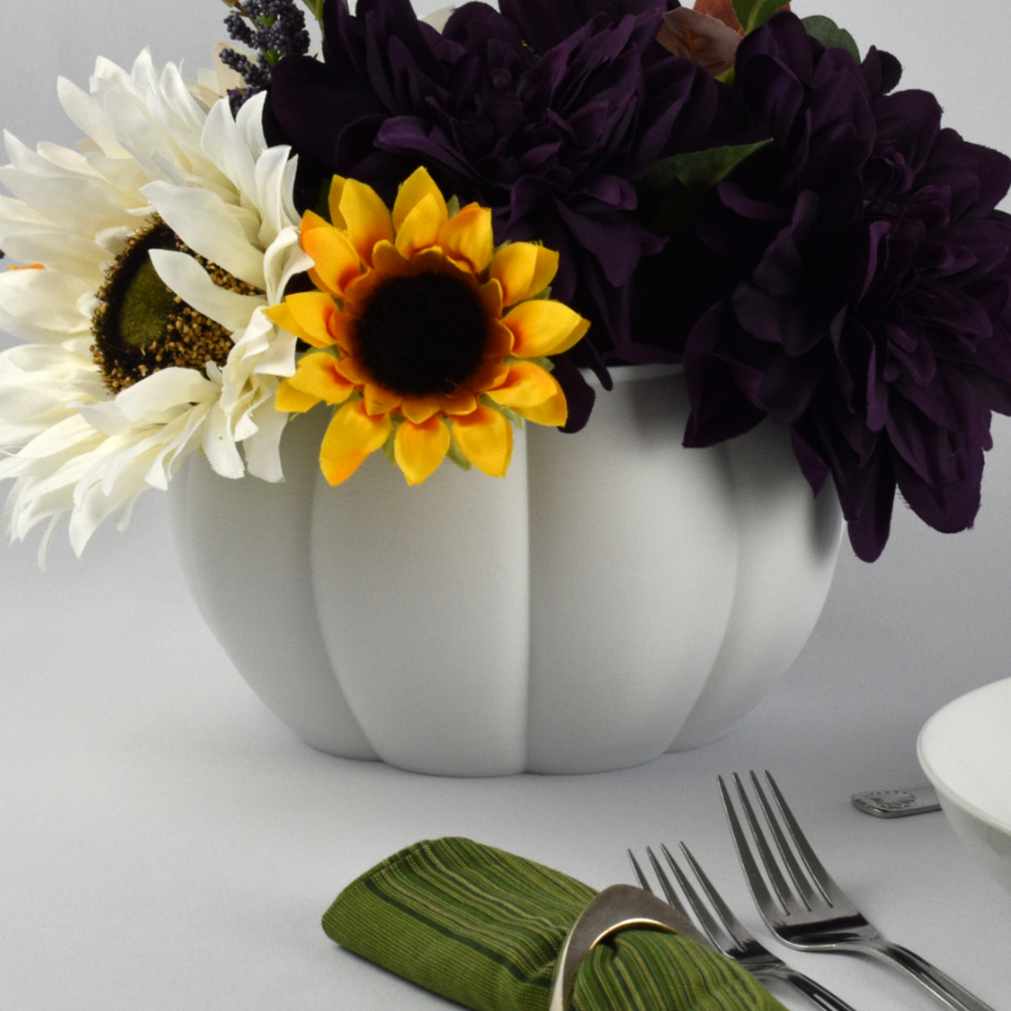 Large Matte White Pumpkin Planter - Autumn Event Decor