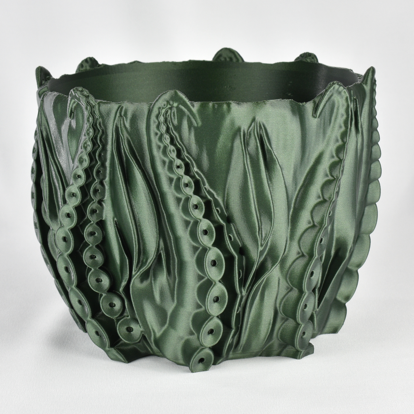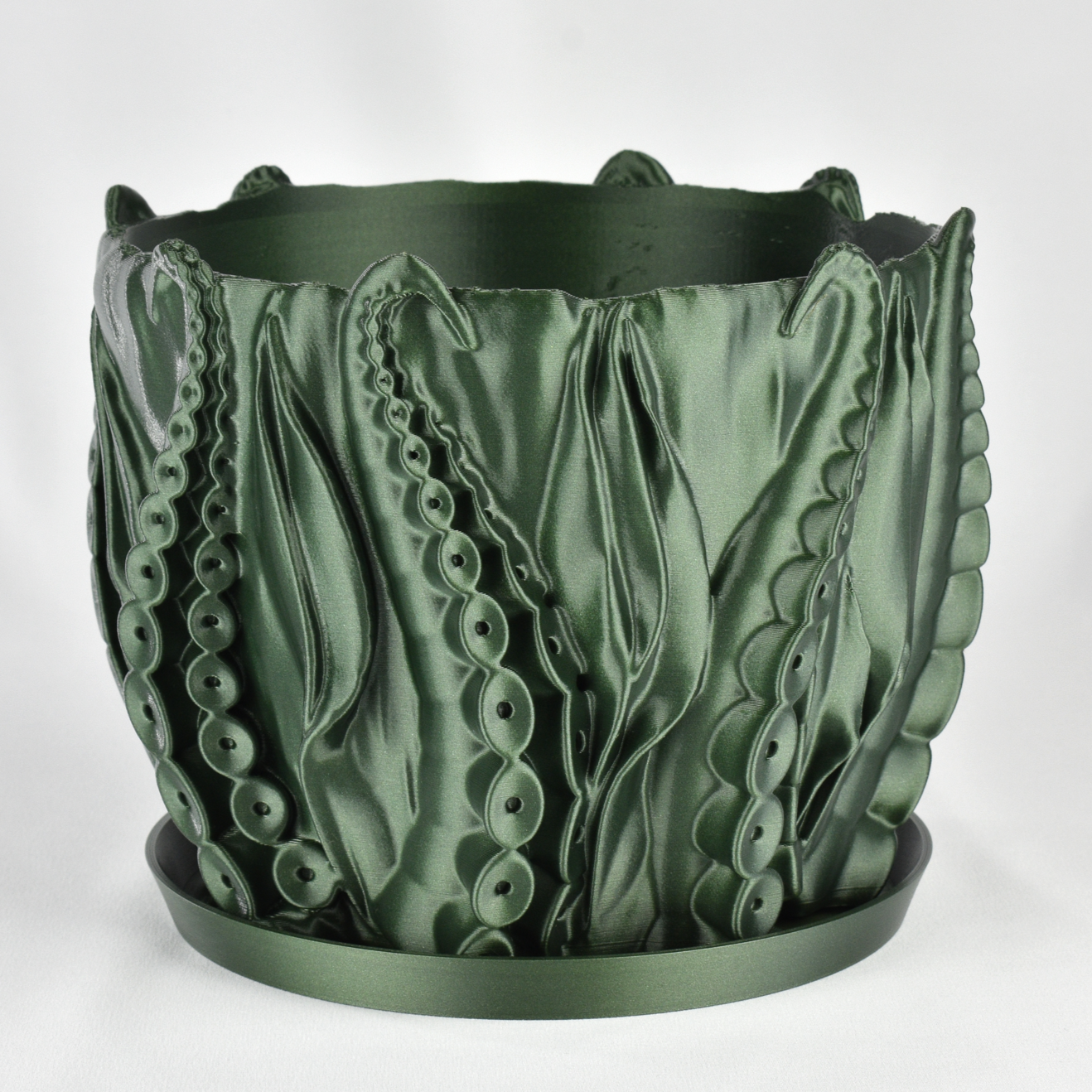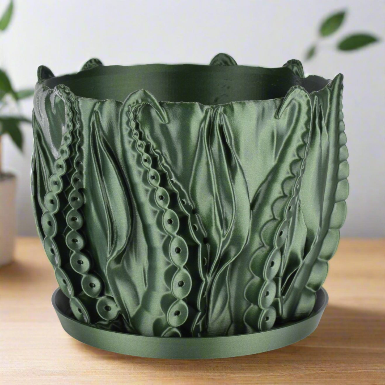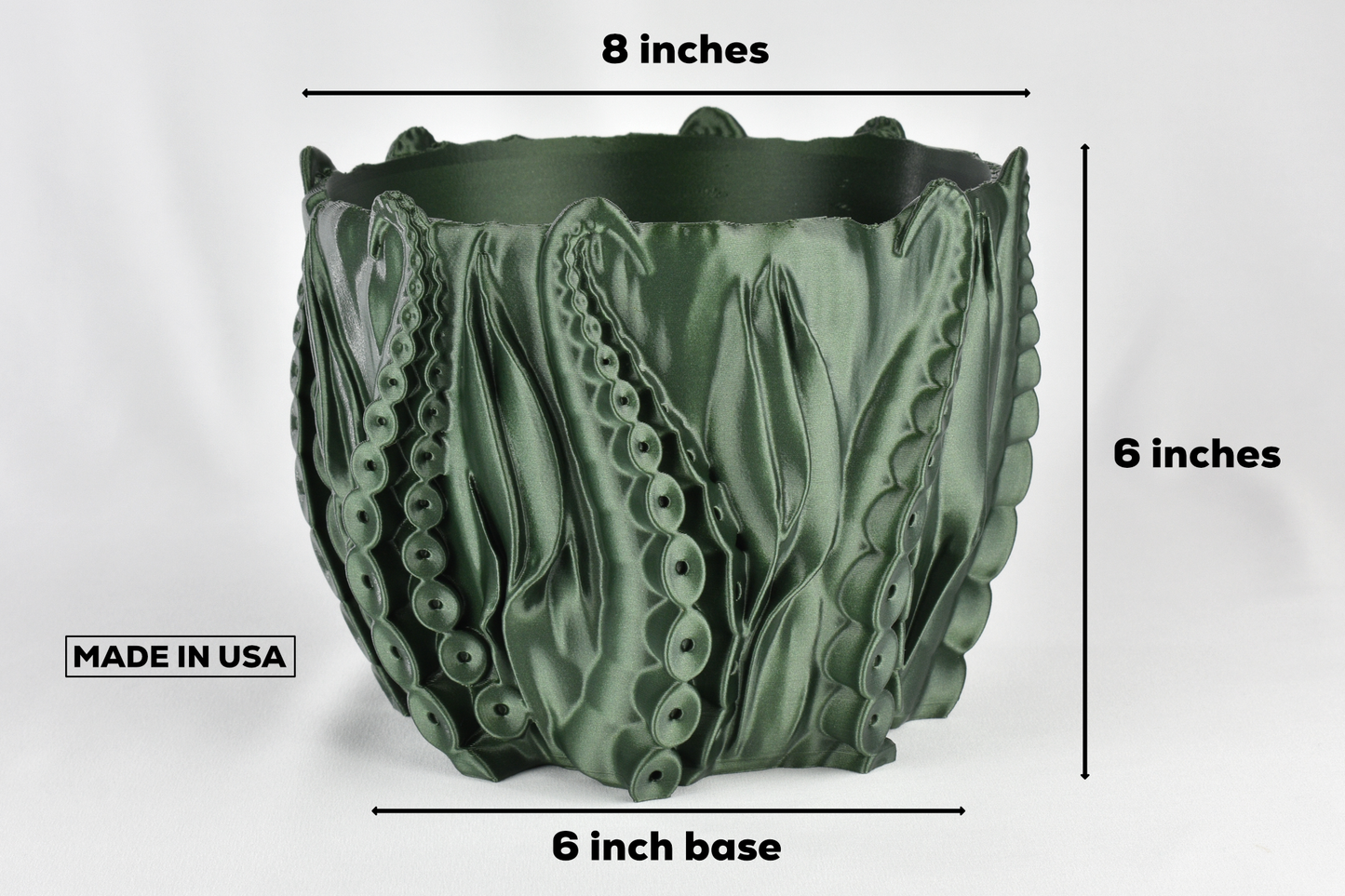 Large Octopus Tentacles Undersea Planter, Metallic Green Color, 8-inch Pot